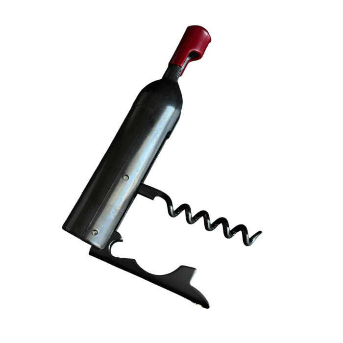 Этот оригинальный штопор выполнен в форме винной бутылки, что делает его не только функциональным, но и стильным аксессуаром. Компактная конструкция удобно лежит в руке, а форма придаёт изделию характерный и запоминающийся вид. Такой штопор отлично подойдёт как для домашнего использования, так и в качестве необычного подарка.