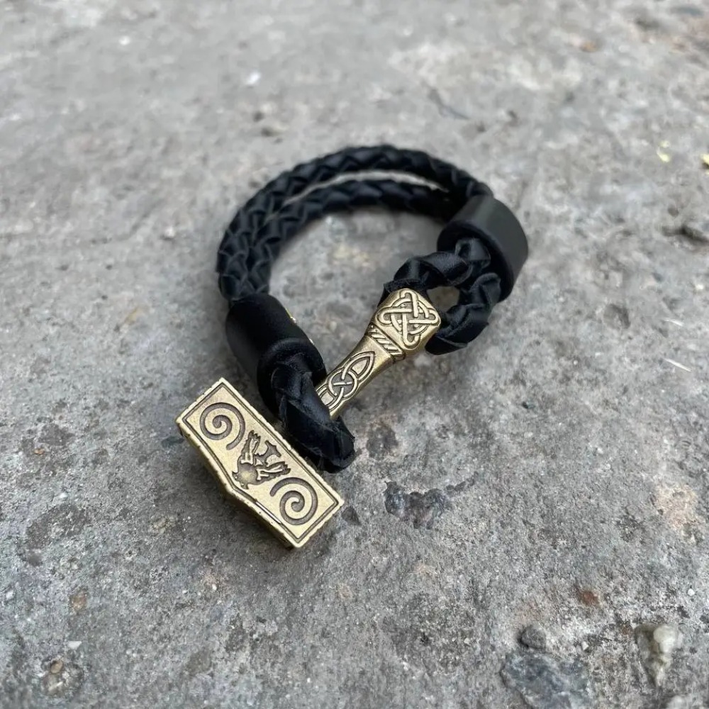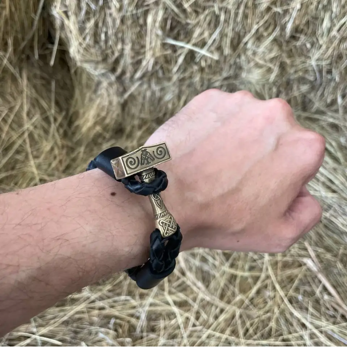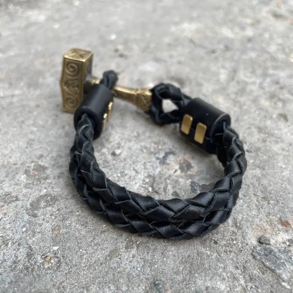 Мужской кожаный браслет МОЛОТ ТОРА №2 ручной работы Gorillas Accessories GR8