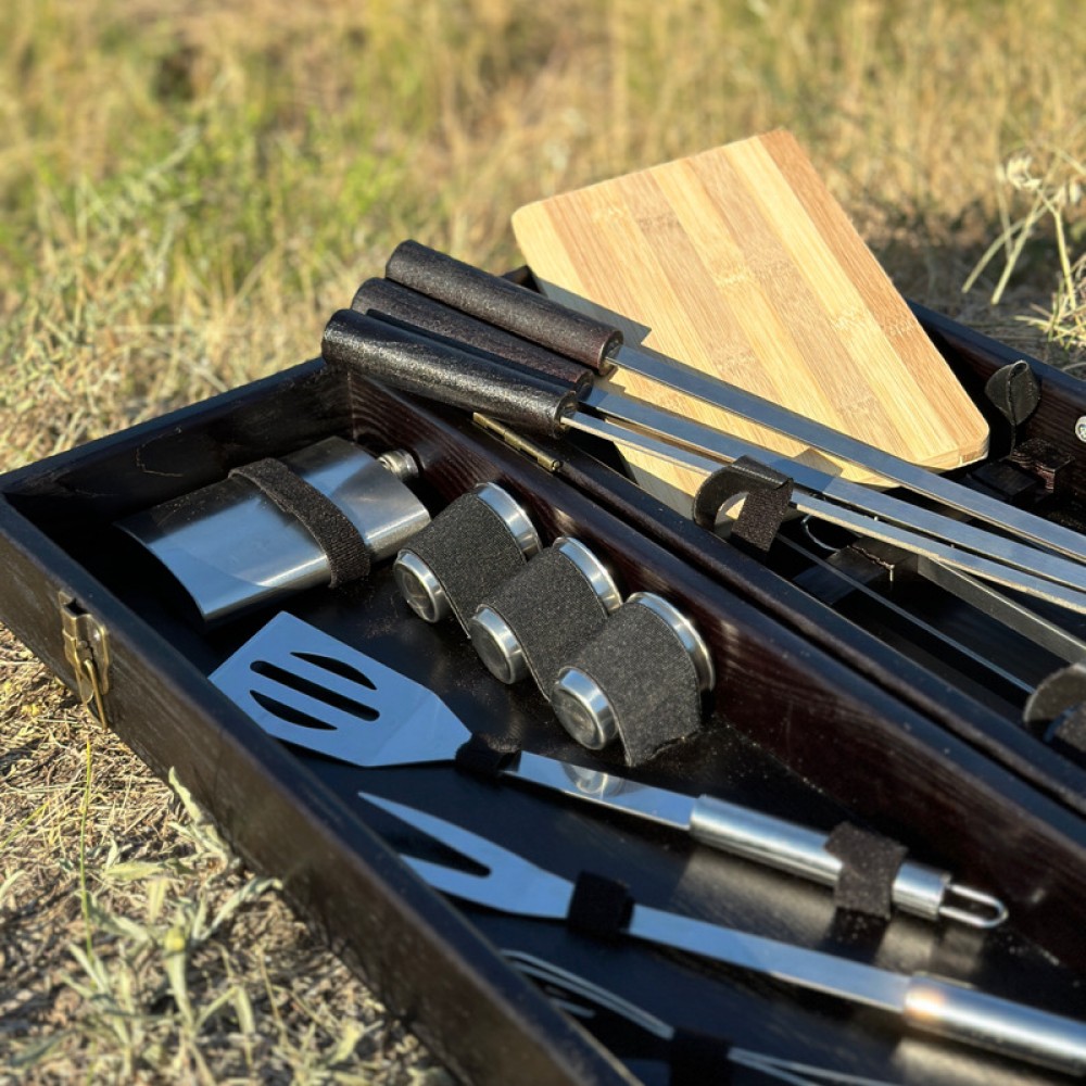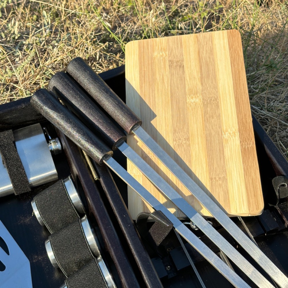 У вас есть возможность сделать набор для шашлыка уникальным, добавив гравировку! Это отличный способ персонализировать подарок и сделать его более значимым. Надпись или рисунок подчеркнет важность события или индивидуальность получателя.