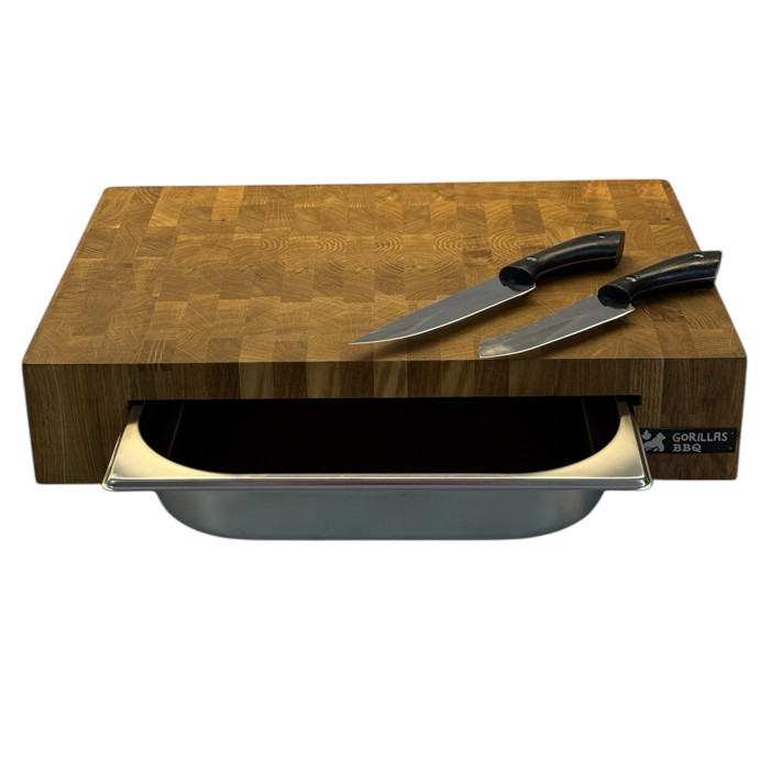 По бокам доски предусмотрены специальные магнитные крепления, позволяющее удобно хранить ножи (2 ножа в комплекте)
