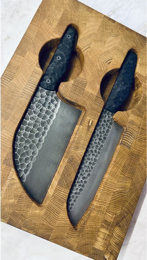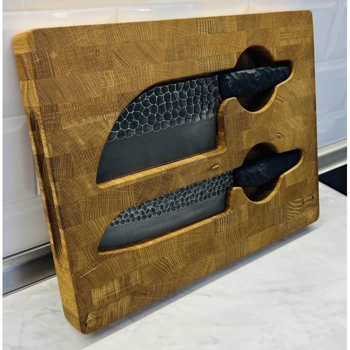 Набор кухонный торцевая разделочная доска с кухонной тяпкой Серб и ножом Шеф Gorillas BBQ DS37