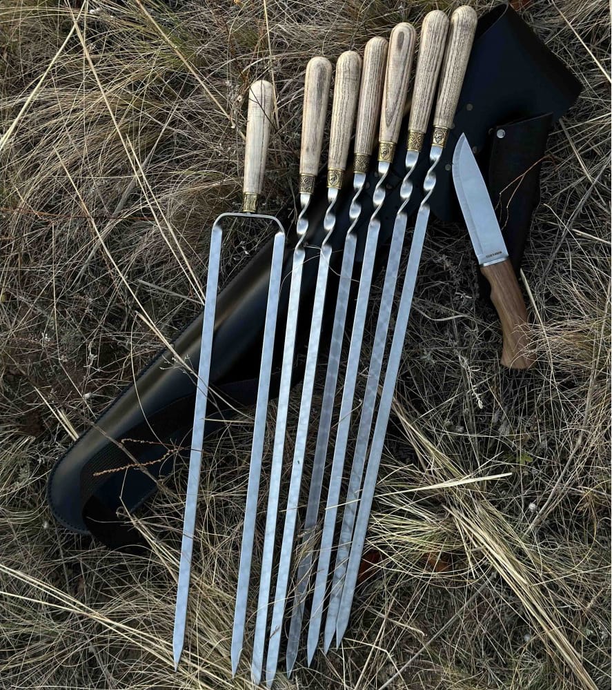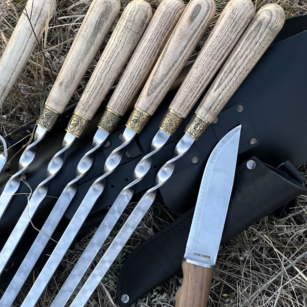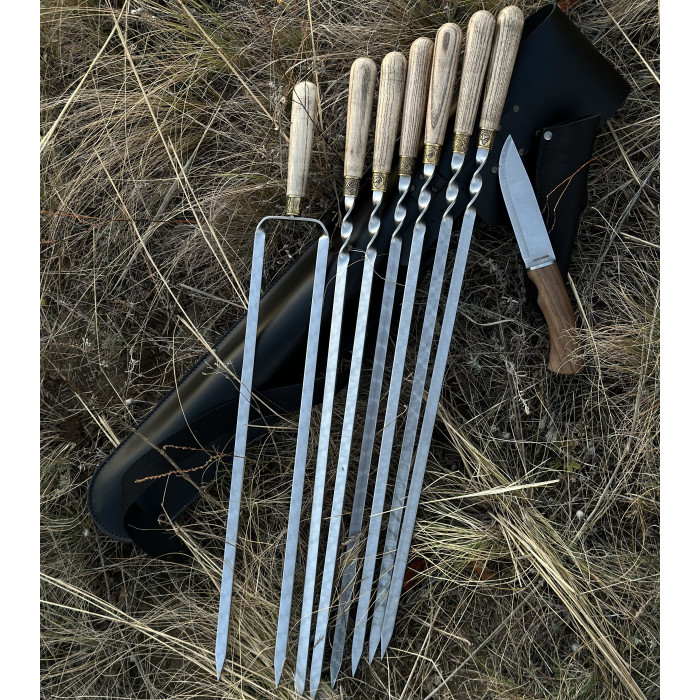 Набор для шашлыка из 8 предметов - отличный подарок для мужчины на любое событие. Подарочный кожаный чехол делает его удобным для транспортировки и хранения. Этот универсальный подарок подойдет для дня рождения, юбилея, или просто для любителей отдыха на природе.
