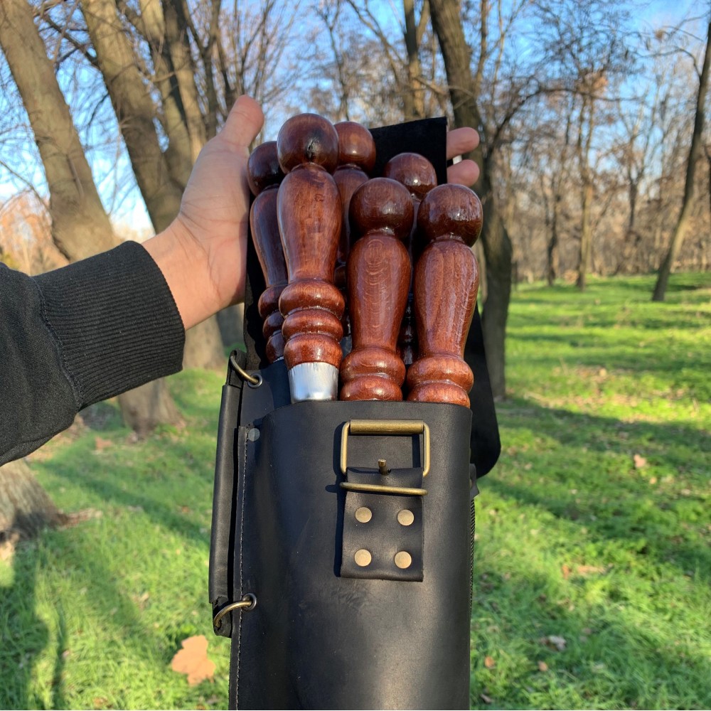 Набор для шашлыка из 6 предметов - отличный подарок для мужчины на любое событие. Подарочный кожаный чехол делает его удобным для транспортировки и хранения. Этот универсальный подарок подойдет для дня рождения, юбилея, или просто для любителей отдыха на природе.