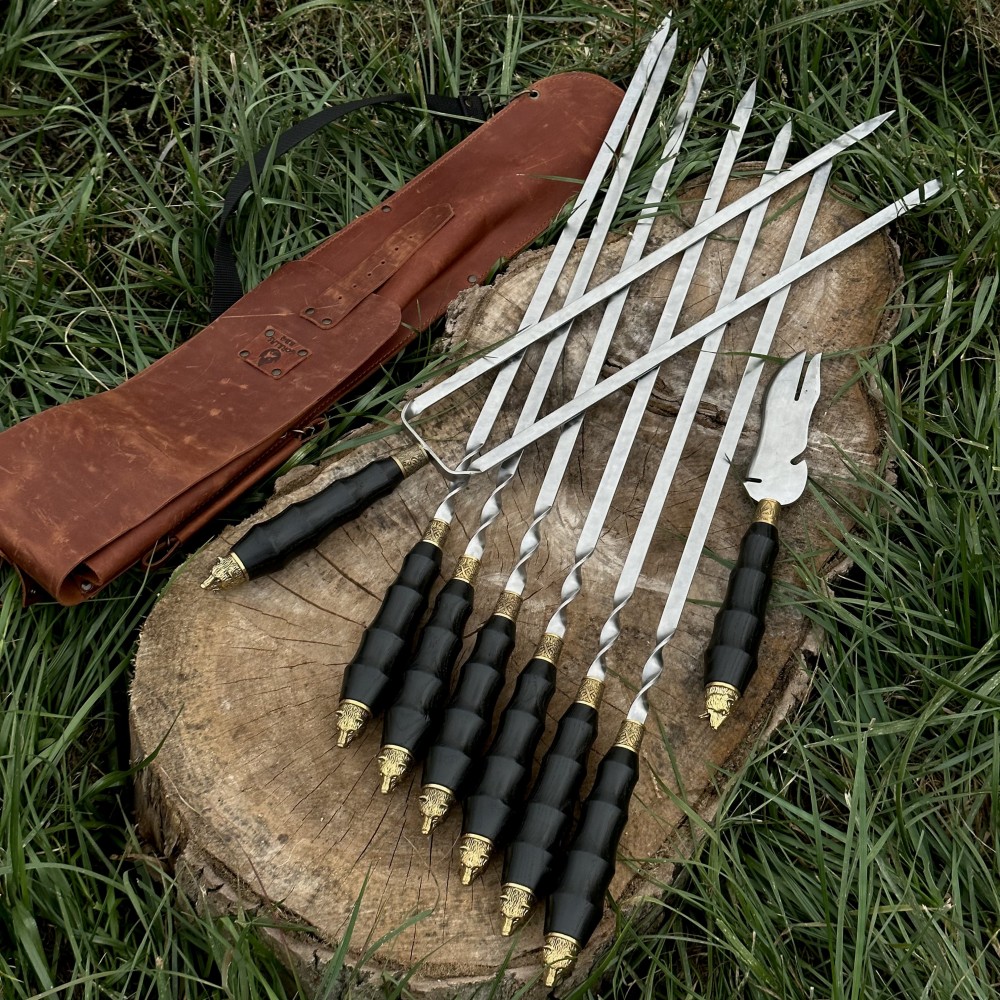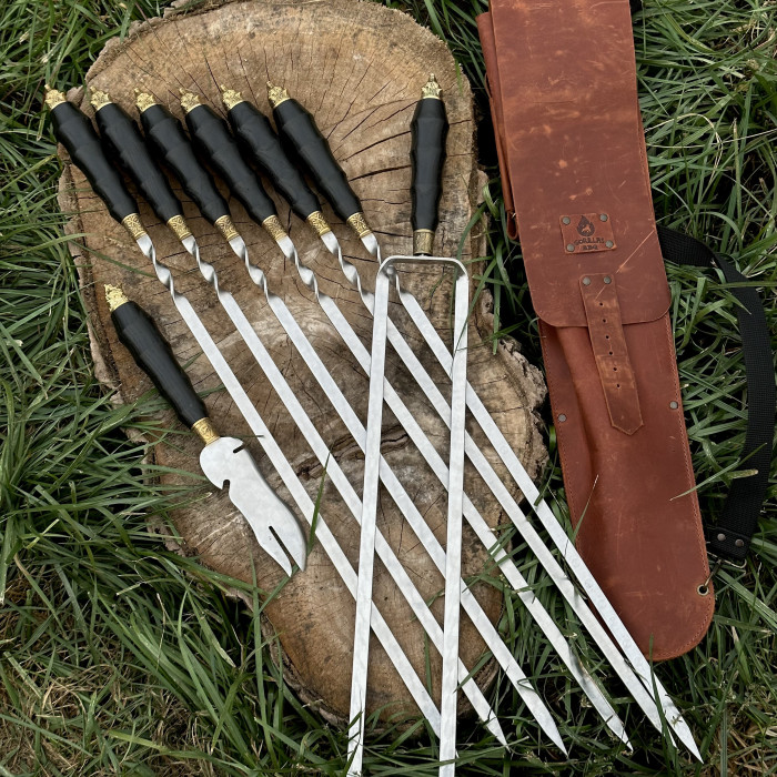 Набор для шашлыка из 8 предметов - отличный подарок для мужчины на любое событие. Подарочный кожаный чехол делает его удобным для транспортировки и хранения. Этот универсальный подарок подойдет для дня рождения, юбилея, или просто для любителей отдыха на природе.