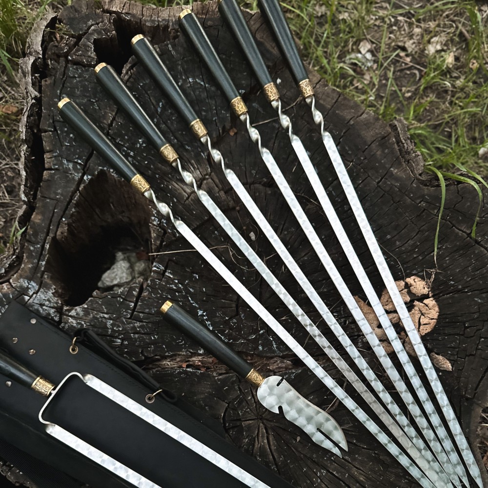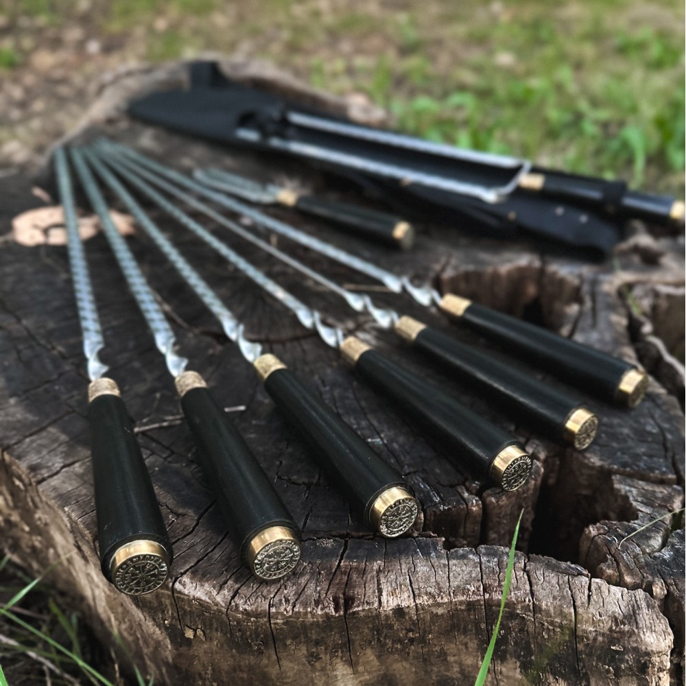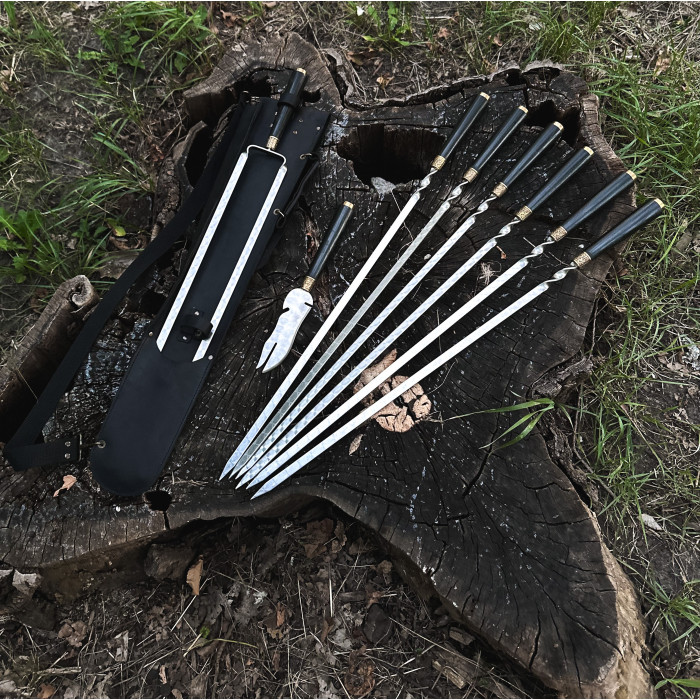 Набор для шашлыка из 8 предметов - отличный подарок для мужчины на любое событие. Подарочный кожаный чехол делает его удобным для транспортировки и хранения. Этот универсальный подарок подойдет для дня рождения, юбилея, или просто для любителей отдыха на природе.