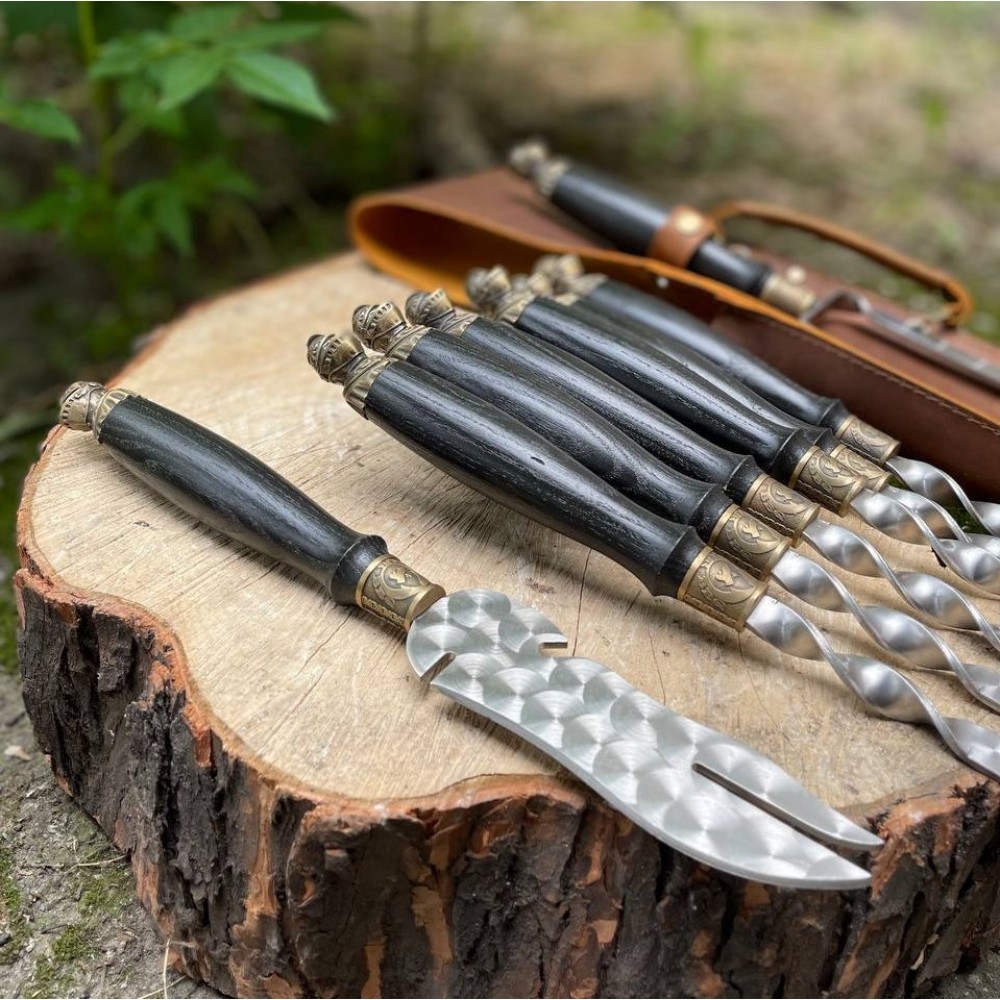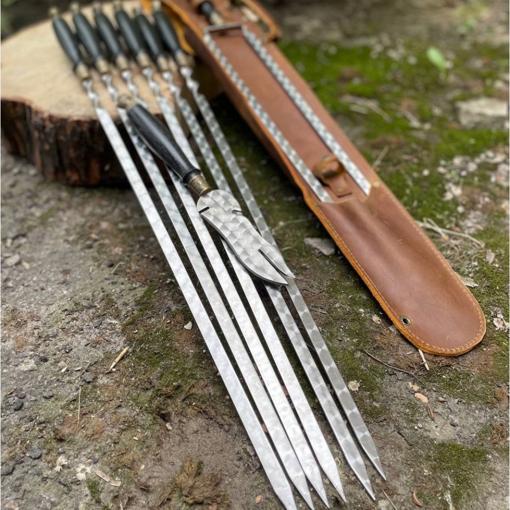 Набор для шашлыка из 8 предметов - отличный подарок для мужчины на любое событие. Подарочный кожаный чехол делает его удобным для транспортировки и хранения. Этот универсальный подарок подойдет для дня рождения, юбилея, или просто для любителей отдыха на природе.