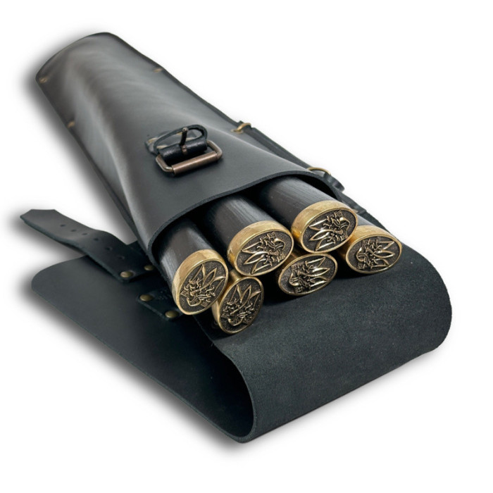 Набор шампуров в кожаном чехле с Украинским гербом — это идеальный подарок для истинных патриотов и любителей качественного барбекю. Шампуры изготовлены из прочной пищевой нержавеющей стали, что гарантирует долговечность и высокую устойчивость к коррозии. Рукоятки выполнены с художественным литьем, придавая изделию эксклюзивный вид.