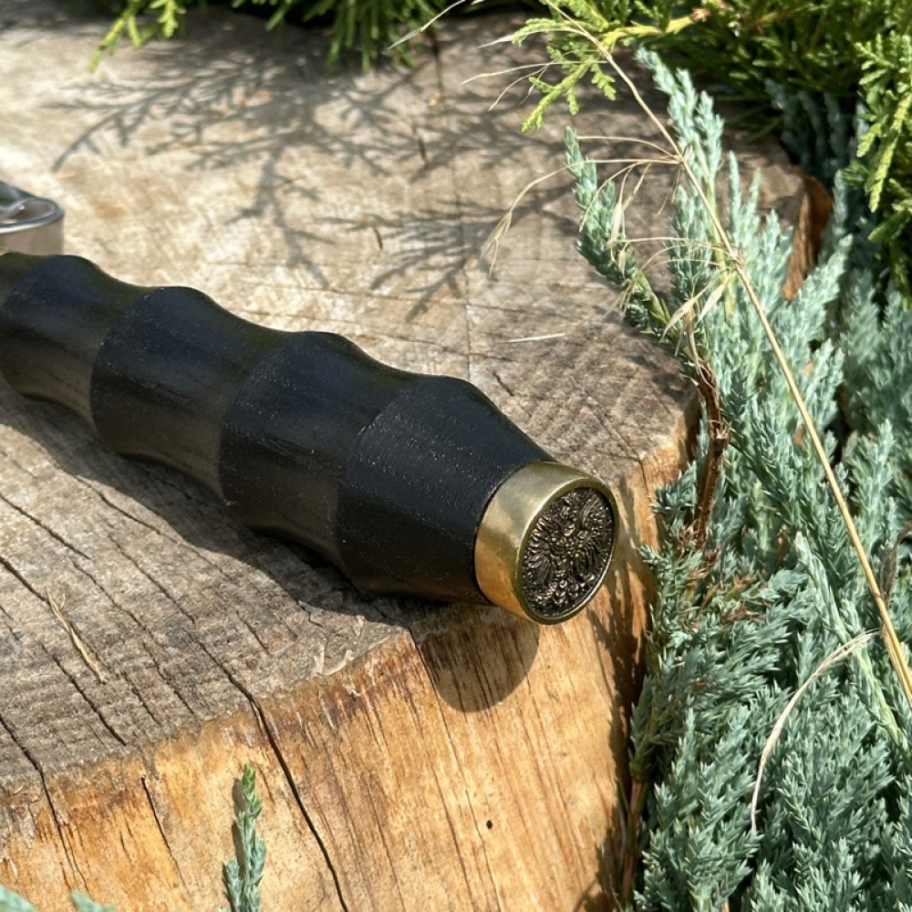 Рукоять выполнена из прочного дерева и декорирована художественным литьём