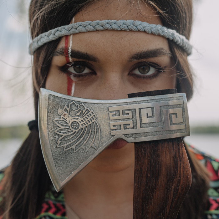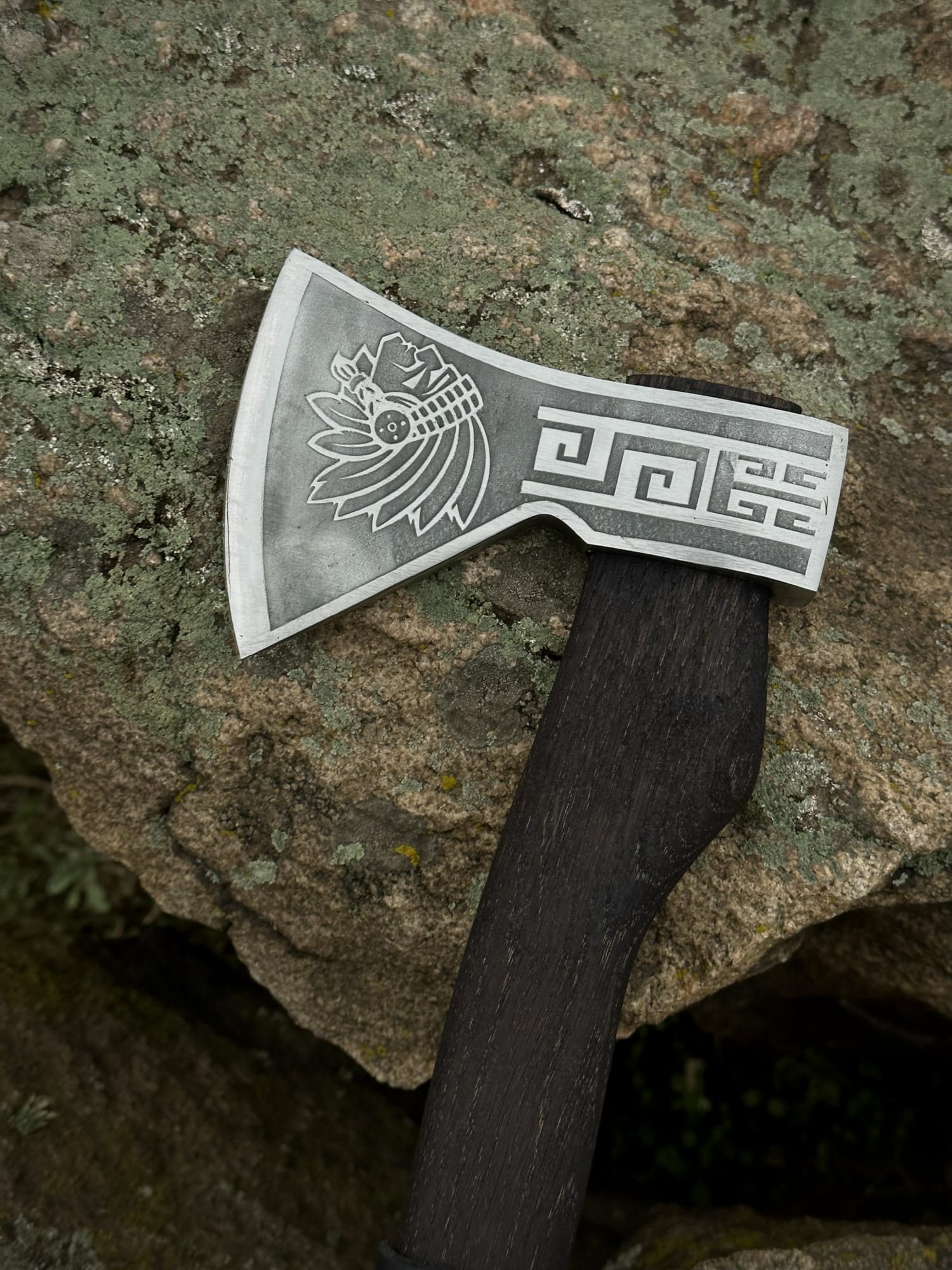 Голова топора декорирована выразительными узорами, что придаёт изделию характер и делает его настоящим произведением ремесленного искусства