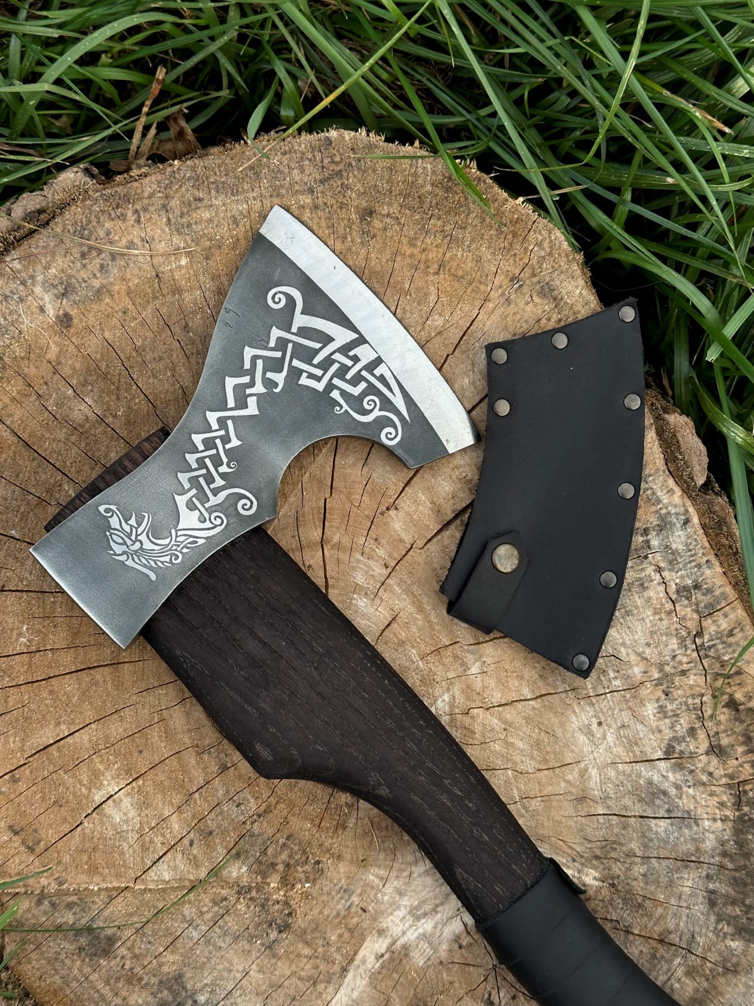 Leather blade cover; A canvas cover for an ax; Name engraving; Individual pattern; Gift box; Stand; Care set