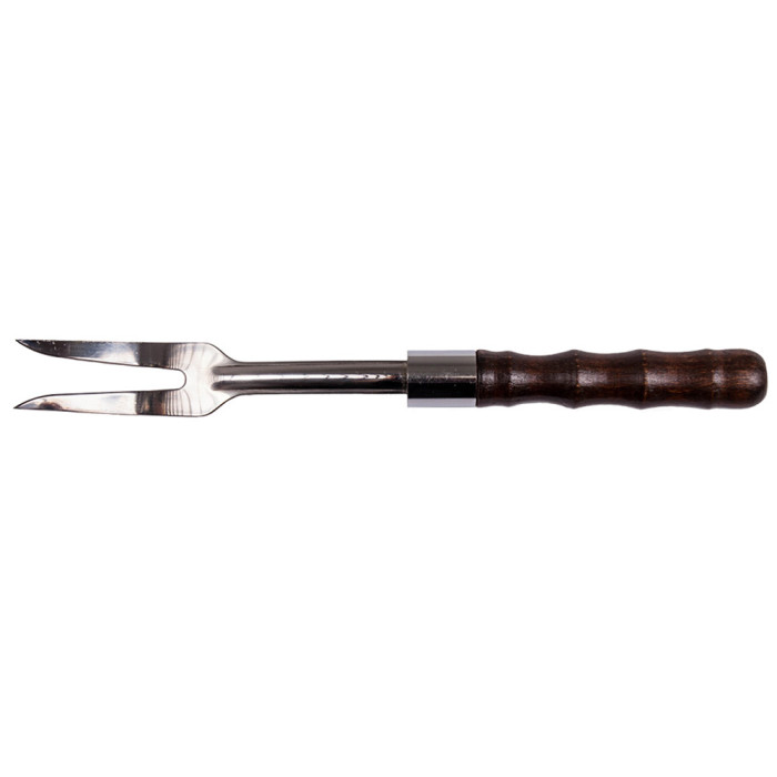 С помощью вилки вы сможете комфортно перевернуть мясо или овощи на решетке. Удобная деревянная ручка покрыта несколькими слоями качественного лака - это сохранит ручку от царапин и повреждений.