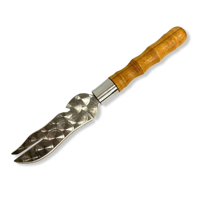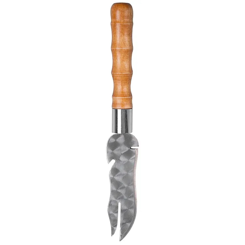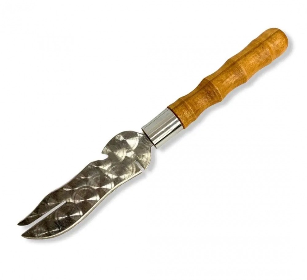 Отличный помощник при приготовлении шашлыка и отдыха на природе. Специальная прорезь позволяет снимать мясо удобно вдоль шампура. Открывалка для открытия бутылок тоже будет очень полезна. Удобная деревянная ручка покрыта несколькими слоями качественного лака - это сохранит ручку от царапин и повреждений.